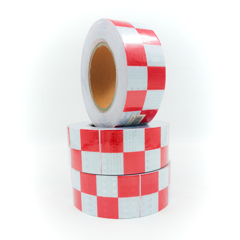 شريط عاكس للسلامة احمر أبيض مربعات 5 سم × 25 م